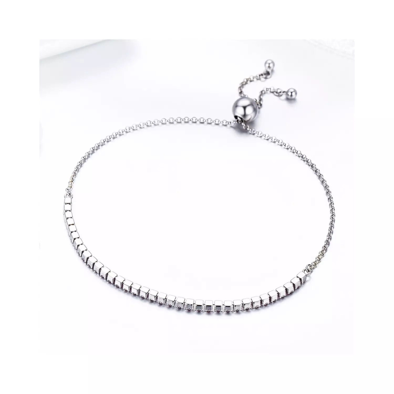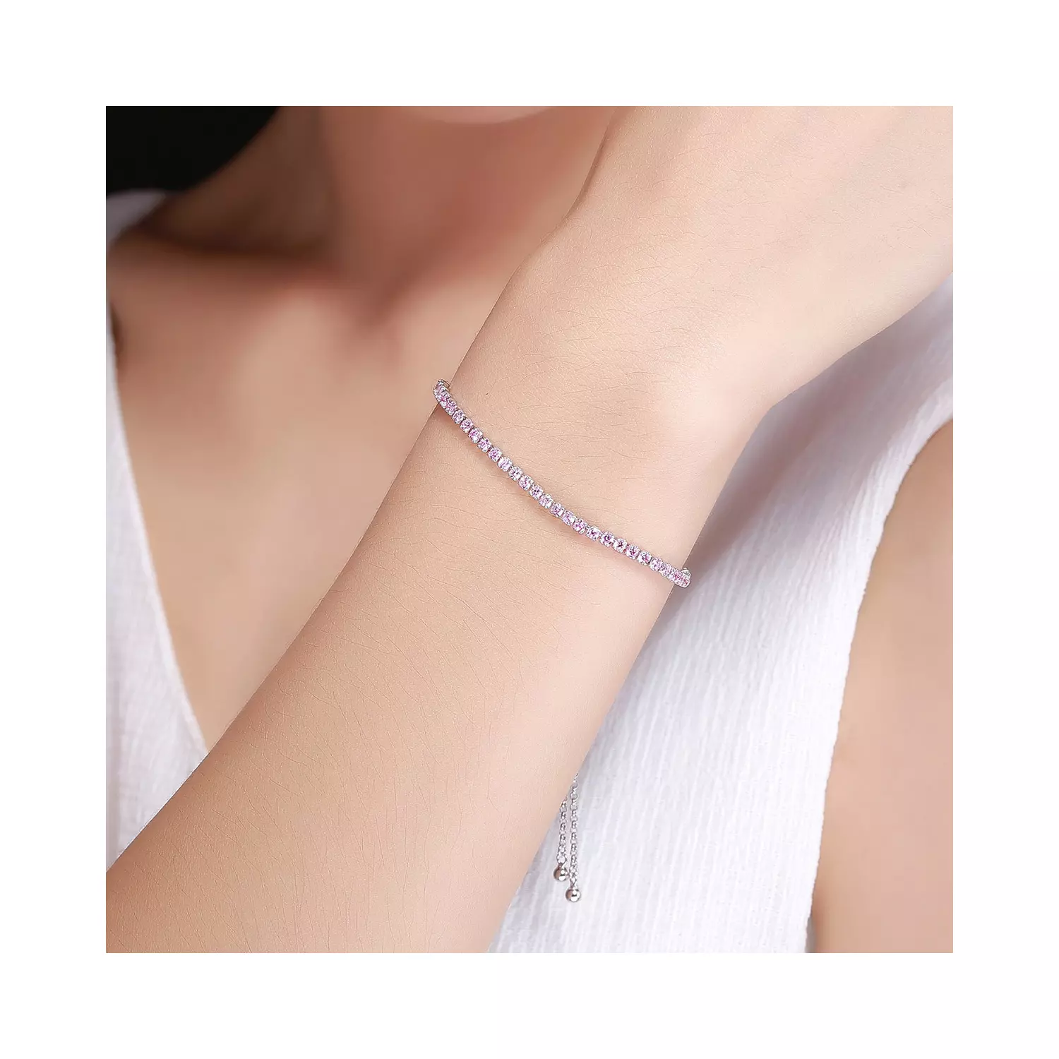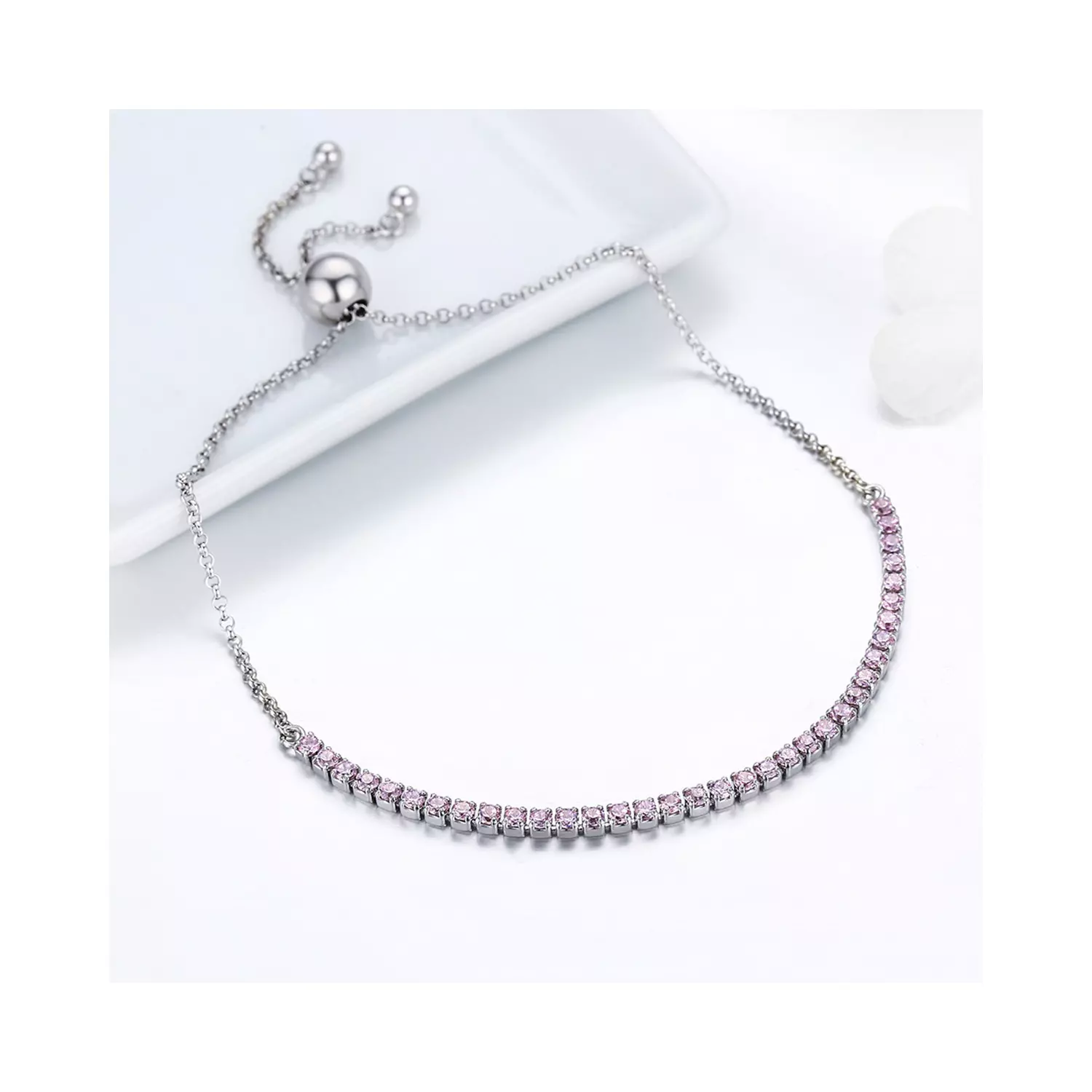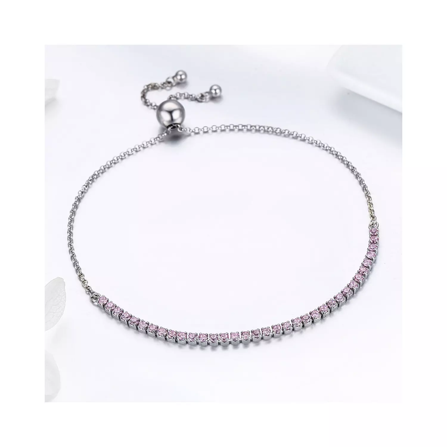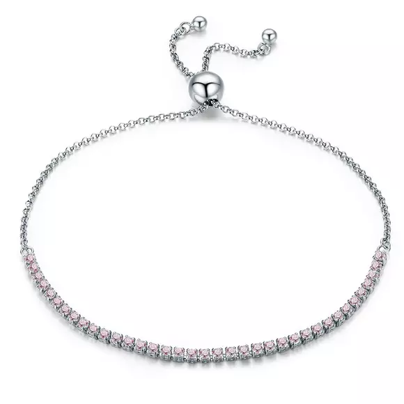 Ezüst karkötő Sparkling Tennis rózsaszín