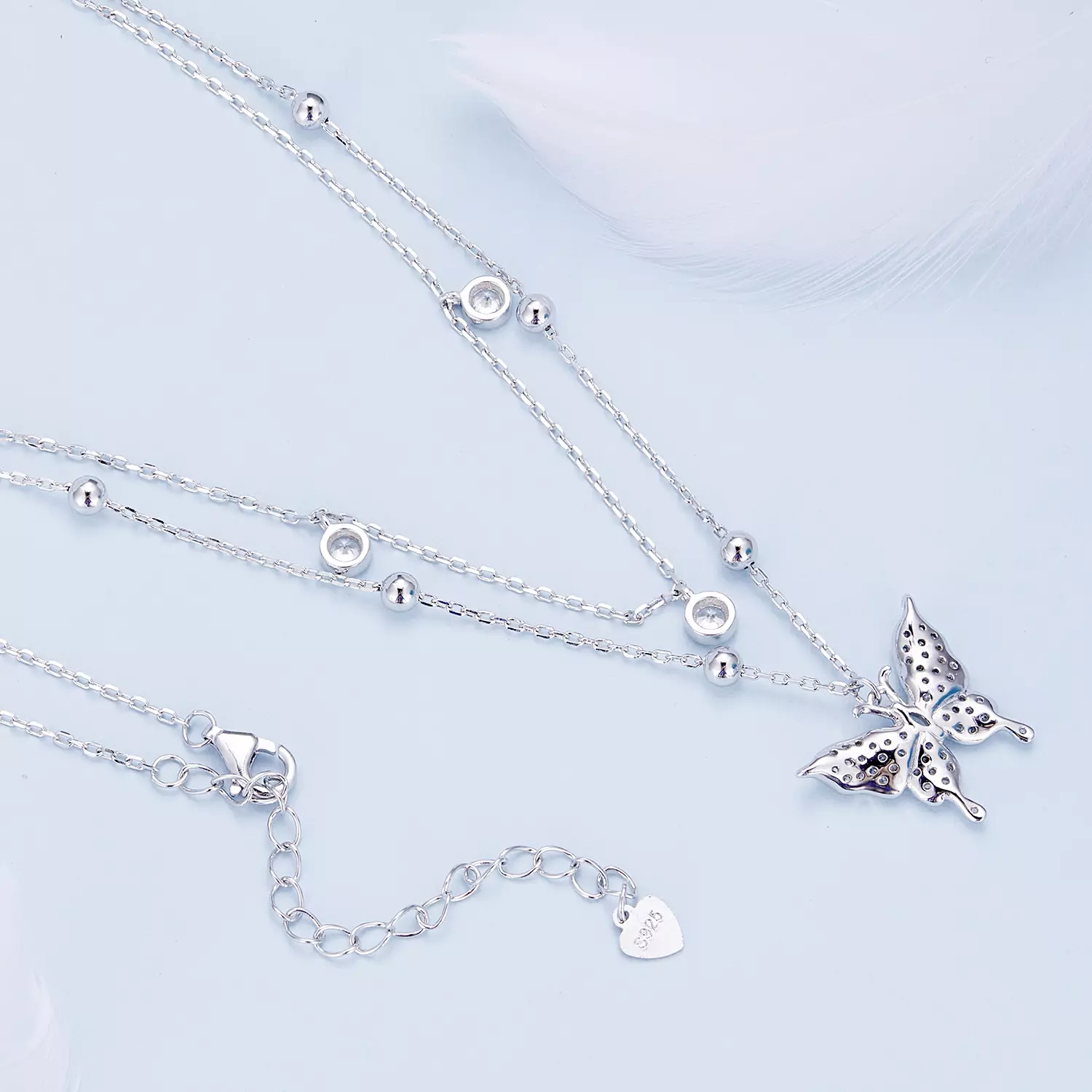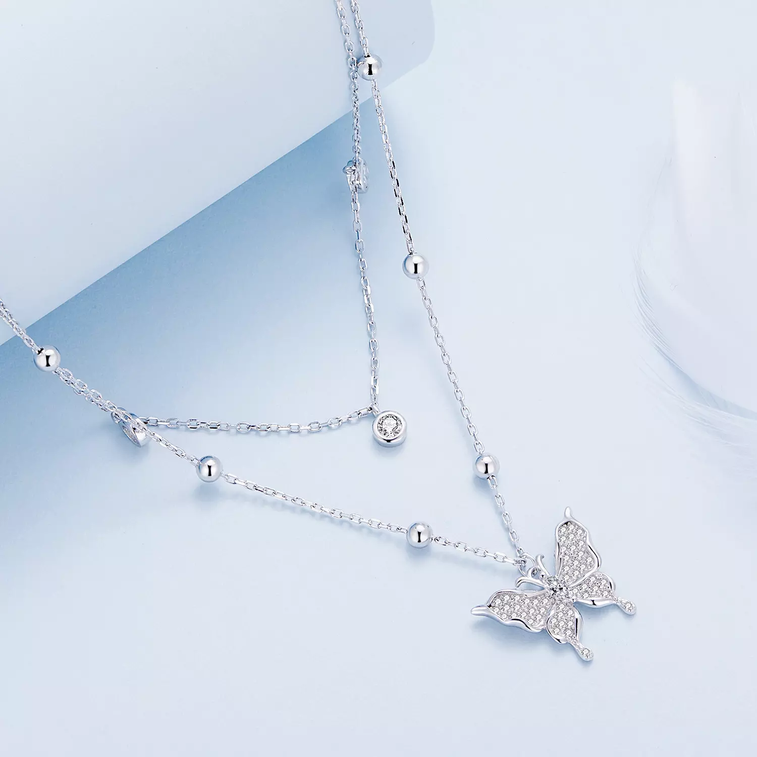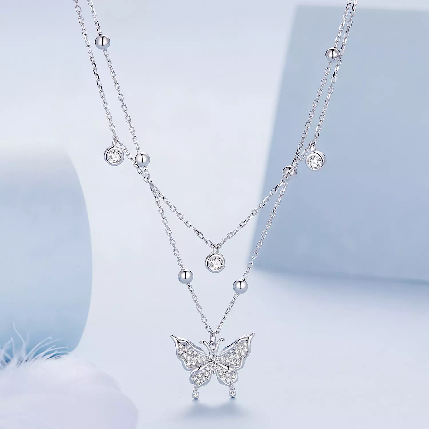 Ezüst nyaklánc dupla lánc csillogó pillangó