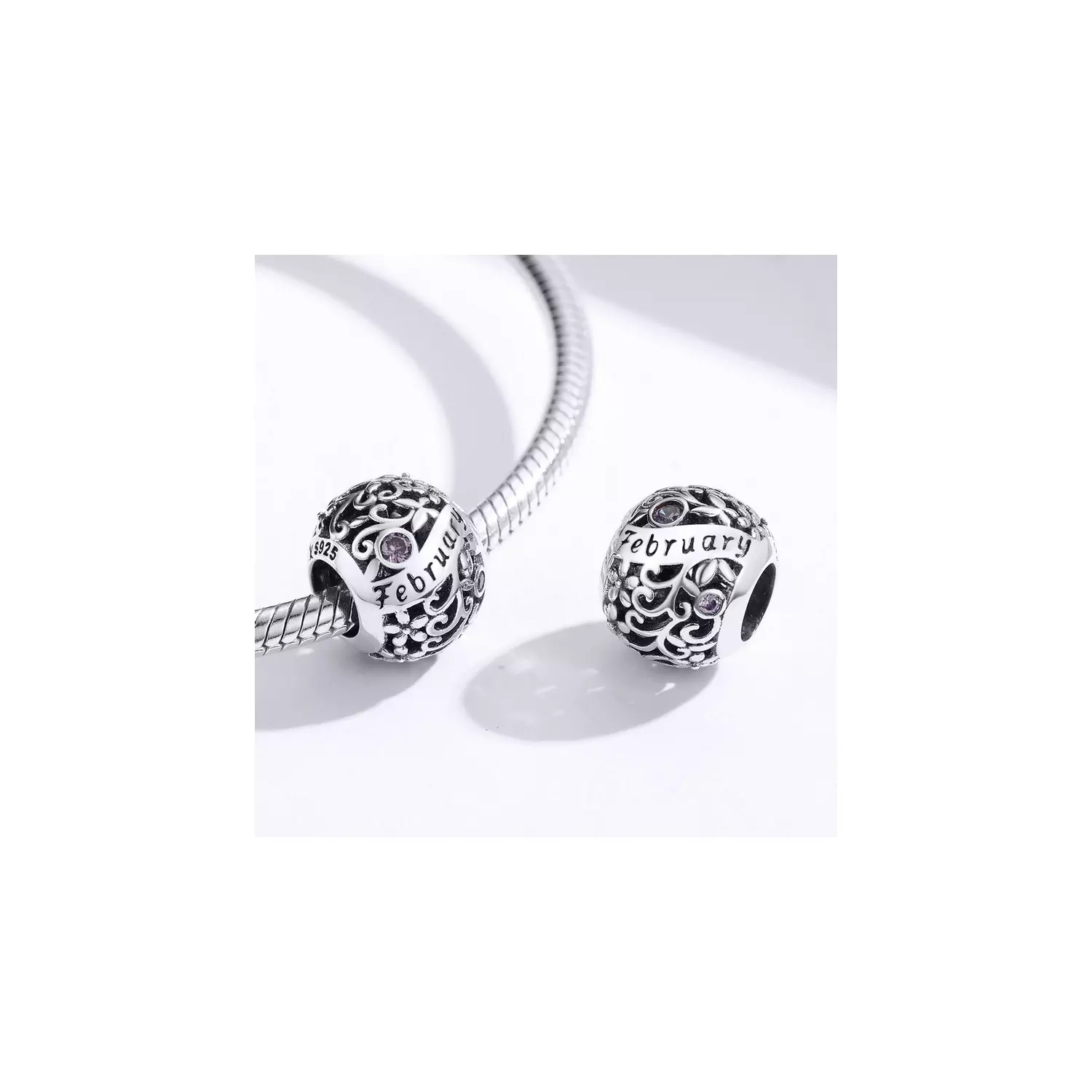 Születésnapi kő februári ezüst talizmán