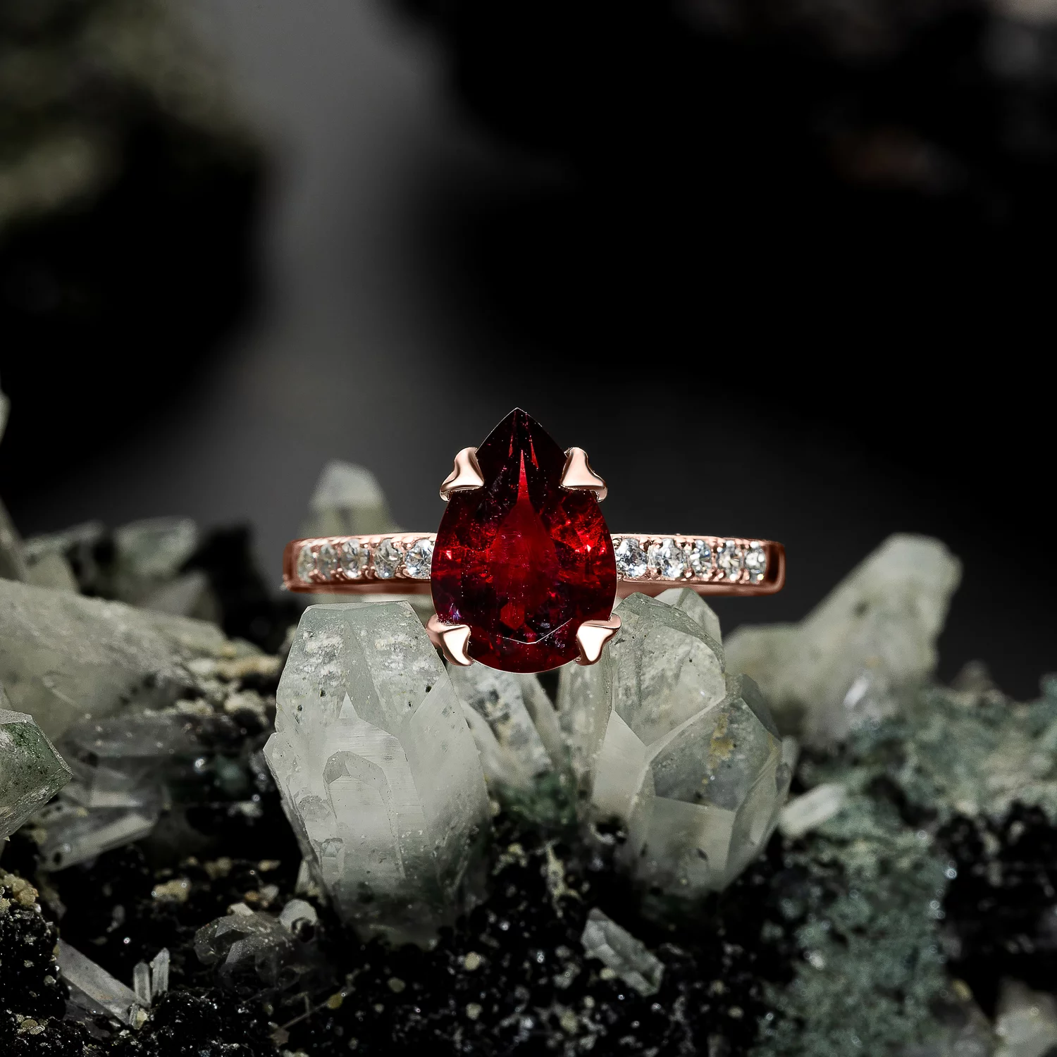 Rose Gold csepp gránát ezüst gyűrű